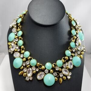 Turquoise Blue Clear Rhinestone Gold Statement Necklace