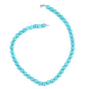 Turquoise Blue Howlite 10mm Beaded Necklace 18" Sterling Silver 250 ctw B416
