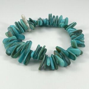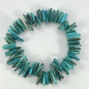 Turquoise Blue Mother of Pearl Shell Chip Stretch Bracelet Boho Statement Cute