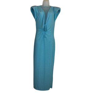 Turquoise Blue Ribbed Dress Large Bodycon Stretch Dress Sexy Party Tight Cute