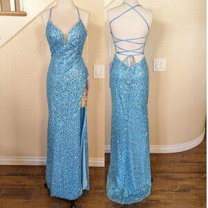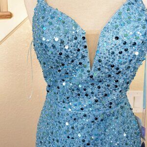 Prom dress Formal Dress Sequined Dress Wedding guest dress Evening Gown Mother of the bride dress Bridesmaids dress Ball gown Homecoming dress Special Occasion Dress Semi-Formal Dress Pageant gown Mermaid Gown Metallic dress Holiday Party Dress Light Blue Dress Aqua Dress