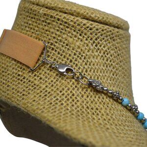 Turquoise Blue Silver Beaded Princess Length Necklace Lobster Claw with Extender
