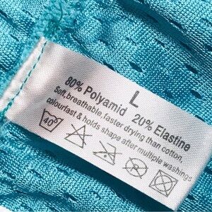 Turquoise Blue Sports Netted Shorts with Black Print And Hem