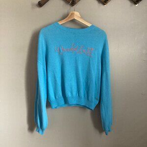 Turquoise Blue "Wanderlust" Embroidered Sweater