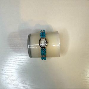 Turquoise Blue and Silver Beaded Bracelet Watch