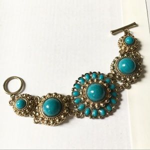 Turquoise and [faux] antiqued gold bracelet with toggle clasp // no signs of wear