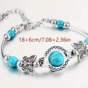 Turquoise Charm Bracelet - Handcrafted Vintage-Inspired Butterfly Bead