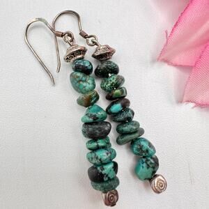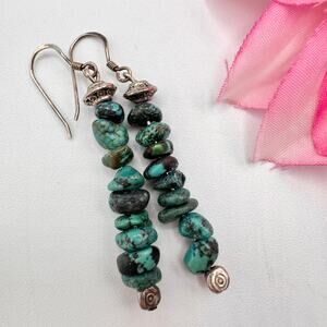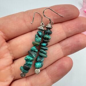 Turquoise Chip Linear Dangle Earrings Southwestern Tribal Native Boho Gemstone