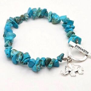 Turquoise Chip Stretch Bracelet with 925 Silver Elephant Charm and Toggle Clasp
