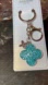 Turquoise Clover Keychain &/or Purse Charm w/ Lobster Clasp with Rhinestones; Silver Hardware