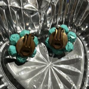 Elegant turquoise cluster earrings perfect for any occasion. Add a pop of color to your outfit with these stunning pieces. Clip On Vintage.