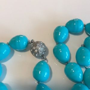 Turquoise enamel necklace, 18 inches, crystal clasp. Knitted on silk. Like new.