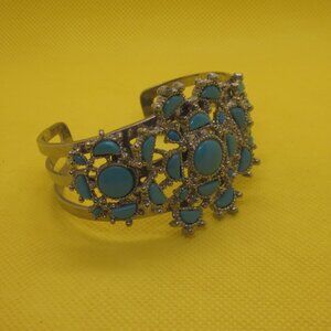 Turquoise Colored & Silver Tone Cuff Bracelet