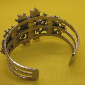 EUC, turquoise colored and silver tone cuff bracelet, not marked, 2.5" width