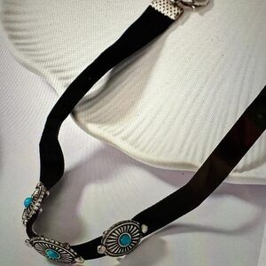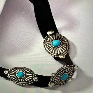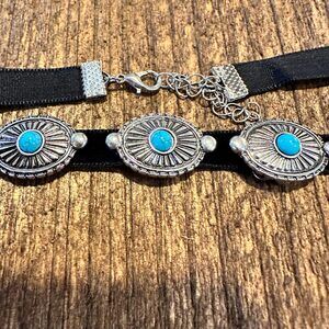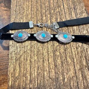 Turquoise Concho Choker Necklace with Black Velvet - Boho Western Style in Gift