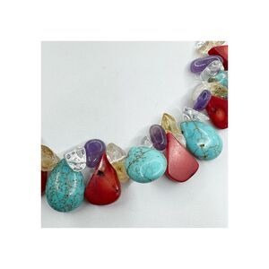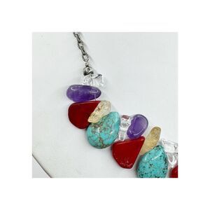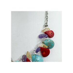 Turquoise Coral Amethyst Stone Collar Necklace Sterling Silver Southwest Boho