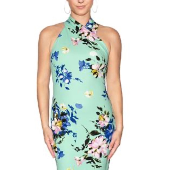 Womens Turquoise Crossover Slit Back Sleeveless Midi Dress