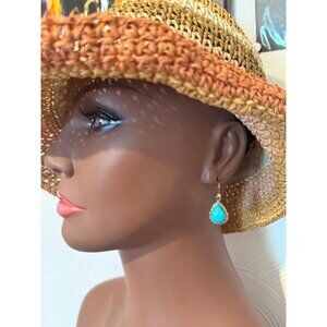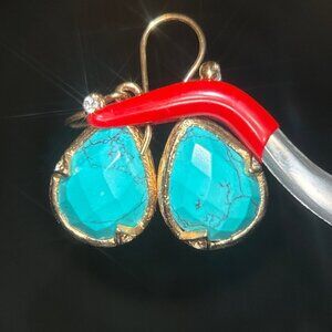 Faux turquoise I believe Not signed Gold color Cute and beautiful earrings