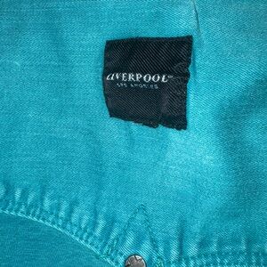 Classic denim jacket detailing from Liverpool. The turquoise color is much more vibrant than the pictures appear, I didn’t have great lighting! Quality construction and a super fun color for Spring!
