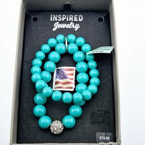 Turquoise Double Strand Turquoise Beaded Stretch Bracelet Western Cowgirl NWT