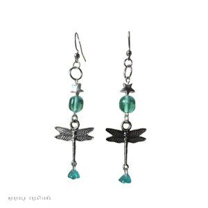 Dragonflies are a sure sign of Spring! Embrace the warm weather with this set of dragonfly earrings with turquoise accents. This set features silver stars, turquoise round beads, dragonflies, and turquoise flower beads.
