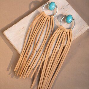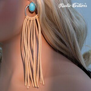 Turquoise Earings Rustic Couture's Bohemian Suede Tassel Hoop Fringe