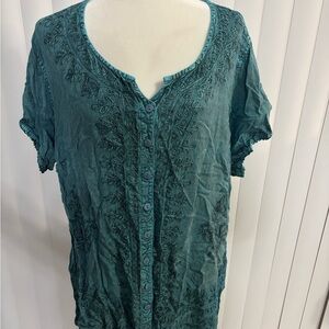 Elegant turquoise top with intricate embroidery. Perfect for any occasion. It is long. Brand new with tags