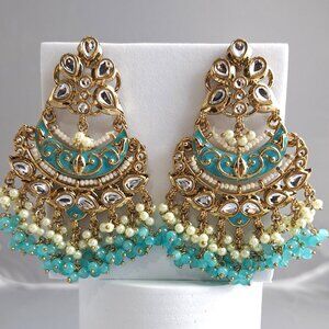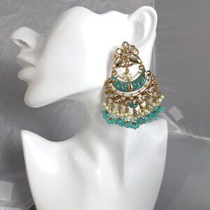 A regal cascade of faux pearls, turquoise, gold, and grace!