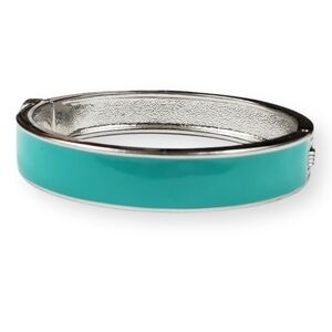 Turquoise enamel silver tone hinged clamper cuff/ bangle bracelet