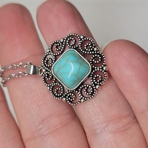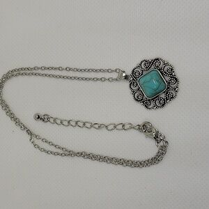 Turquoise Faux Stone Silver Tone 16" + 2" Extension Necklace