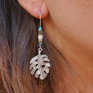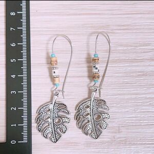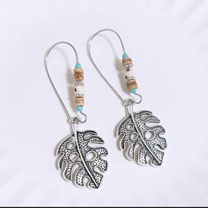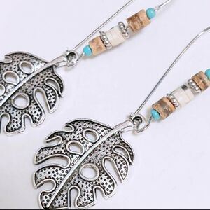 Turquoise Feather Dangle Drop Aesthetic Beads Boho Vintage Feather Leaf Earrings