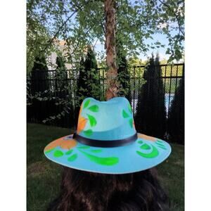 Turquoise Fedora Art Hand-Painted High-Quality Floral Hat from Mexico