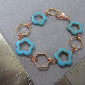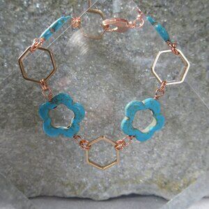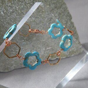 Turquoise Flower Bracelet, Turquoise Magnasite, Rose Gold