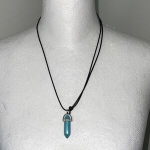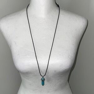 Turquoise Gemstone Hexagonal Pointed Bullet Pendant Adjustable Black Rope Necklace