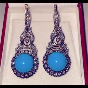 Great Sale for this gorgeous unique turquoises Dimond gold vintage style earrings