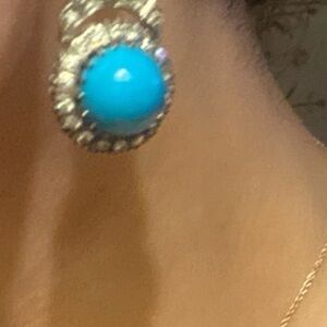 - Turquoise Gold Dimond earrings gorgeous vintage style 14k gold