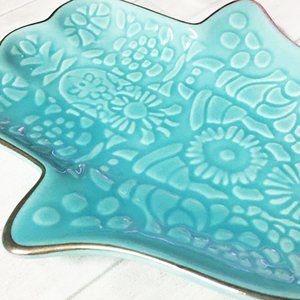 Turquoise & Gold Porcelain Hamsa Trinket DIsh