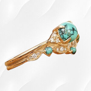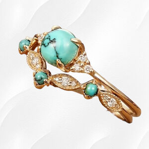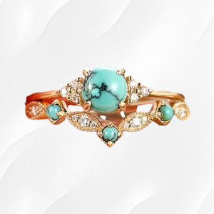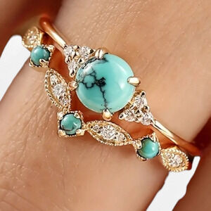 Turquoise Golden Boho Inlaid Round Rhinestones Fashion Stackable Rings Size 7