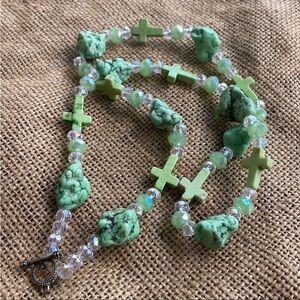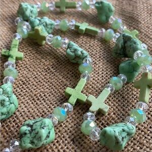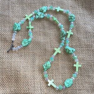 Turquoise Green Crosses Necklace Glass Beads Stone Necklace Western New