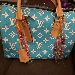 Elevate your style with this handbag in a stunning turquoise color. Featuring the iconic bag charm trend , this bag is perfect for any occasion.