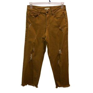 Turquoise Haven Size 1X Mustard Brown Distressed Frayed Hem Straight Jeans Pants