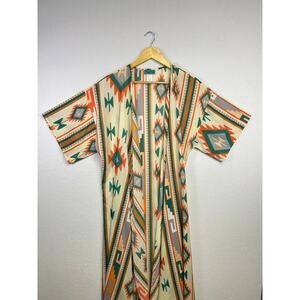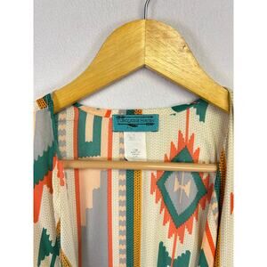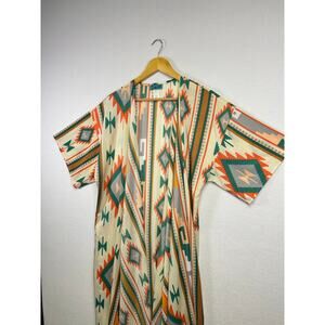 Turquoise Haven boho aztec floor length duster kimono cardigan L/XL