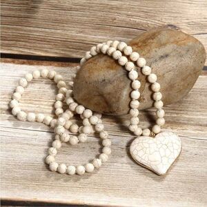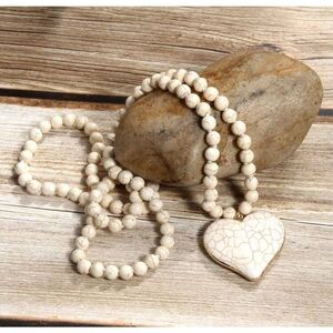 Beautiful white turquoise beaded necklace with heart pendant. Bohemian chic style that adds style to any outfit. Last picture is for measurements only.