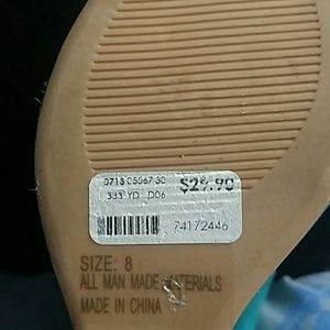 These are very comfortable. It has a open toe in the front. It do have a price tag but has been worn twice.