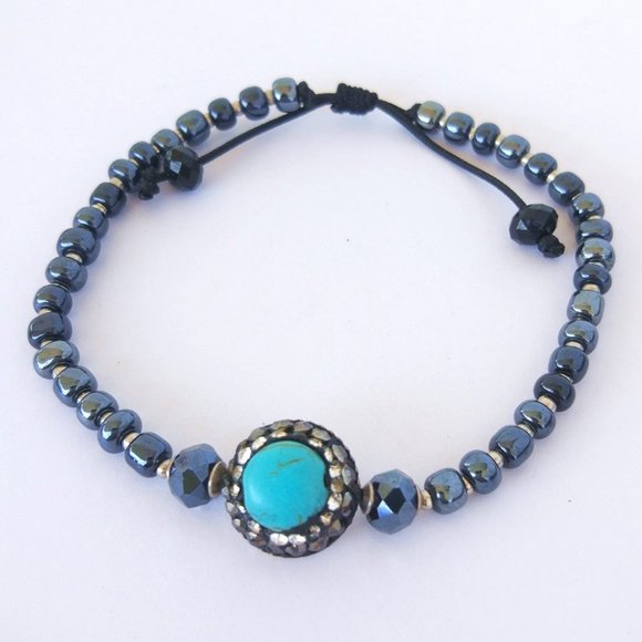 Turquoise Hematite Stone Elevator Cord Bracelet