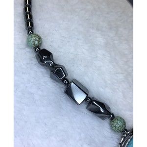Turquoise Howlite & Hematite Southwestern Style Necklace Gemstone Magnetic Clasp. 18" Necklace. Condition: very good 47235-91c188