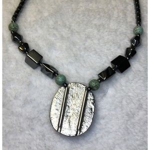 Turquoise Howlite & Hematite Southwestern Style Necklace Gemstone Magnetic Clasp