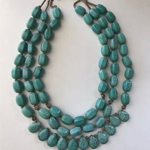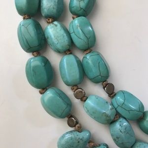 triple strand 19” necklace .Turquoise Colored Dyed Howlite ,Graduated Length,.