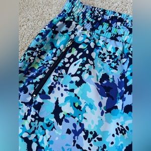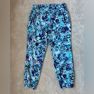 Excellent/like new condition. Gorgeous fabric has some light stretch. Can easily be dressed up or down, they are so versatile. Pull-on style with stretch waistband and stretch cuffs at ankles. Has zippered pockets.