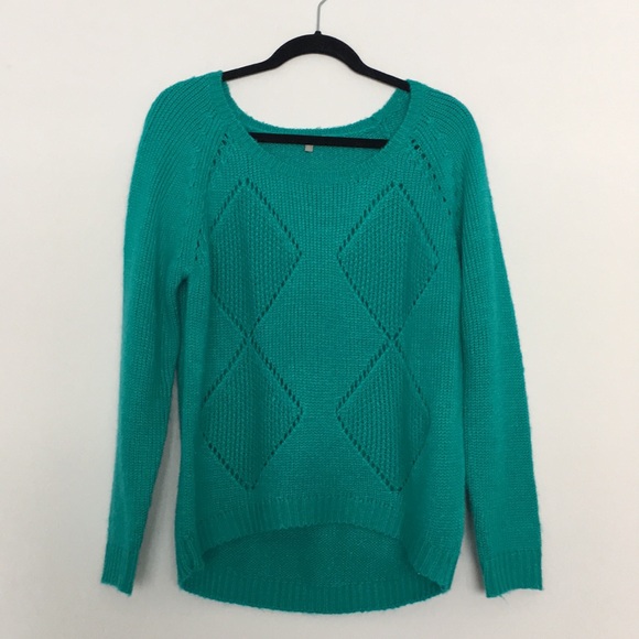 • Very soft and comfy turquoise knit scoop neck sweater with diamond pattern on front